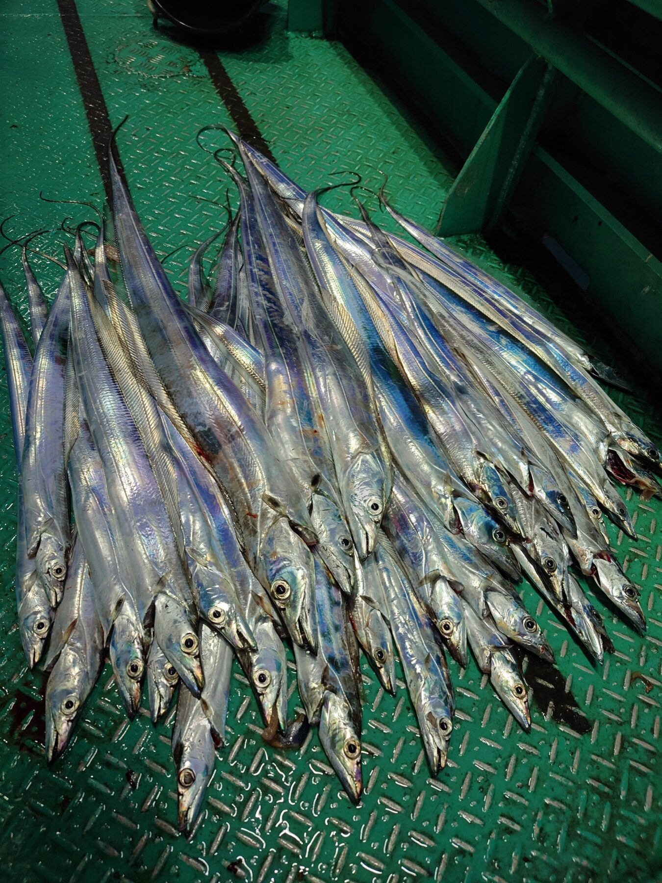 深夜便で出船しました。昼間から吹き続いていた南西の風は日が変わる頃に収まり出港時間を遅らせての出船となりました。ポイントつき反応もよく当たりもありましたが食気無くなかなか針掛かりさせる事が難しかったです。それでも朝マズメのゴールデンタイム今日も凄かったですね!仕掛けを棚に落としたとたんにあわせを入れる、そんな事もありました。ゴールデンタイムの開始がもう少し早く始まってくれたら良かったんですが…