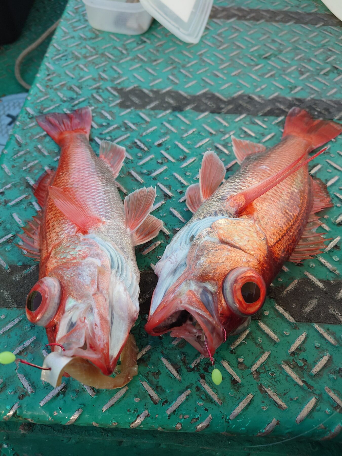 本日タチウオ調査に行ってきましたが、姿見当たらず撃沈…まぁまだ少し気が早いですね。タチウオはちょこちょこ様子見に行きますね!そのあとはアカムツのポイントへ。最近やらなかったポイント行きましたが魚影は濃いような感触でした。潮次第ではいい釣果期待できそうです。