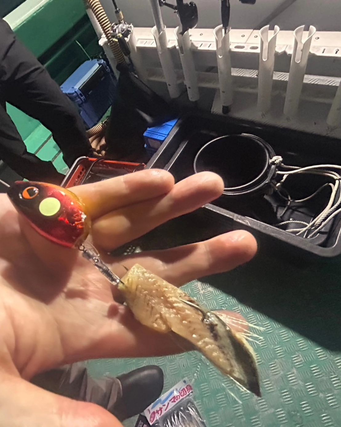 当船スタッフもエサ釣り、ジギングと様子見で竿出しましたが、サーベルカブラやサーベルテンヤのほうがアタリ多く出せる日となりました…